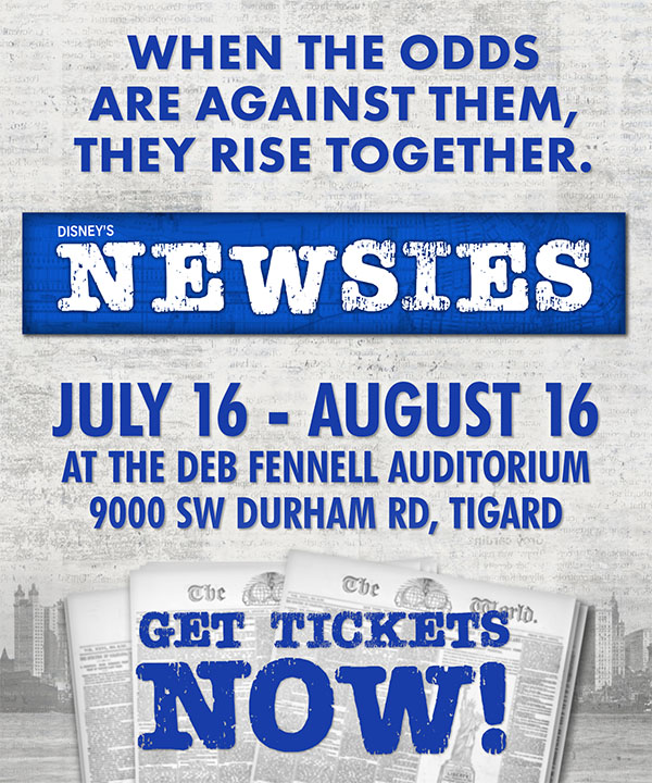 Inspired by the 1899 Newsboy Strike, Disney’s Newsies follows Jack Kelly and a band of misfit teens who unite to fight unfair price hikes. With courageous characters, unforgettable songs, and energetic dance numbers, this musical seizes the day with friendship, heart, and the strength found in knowing you’re not alone.