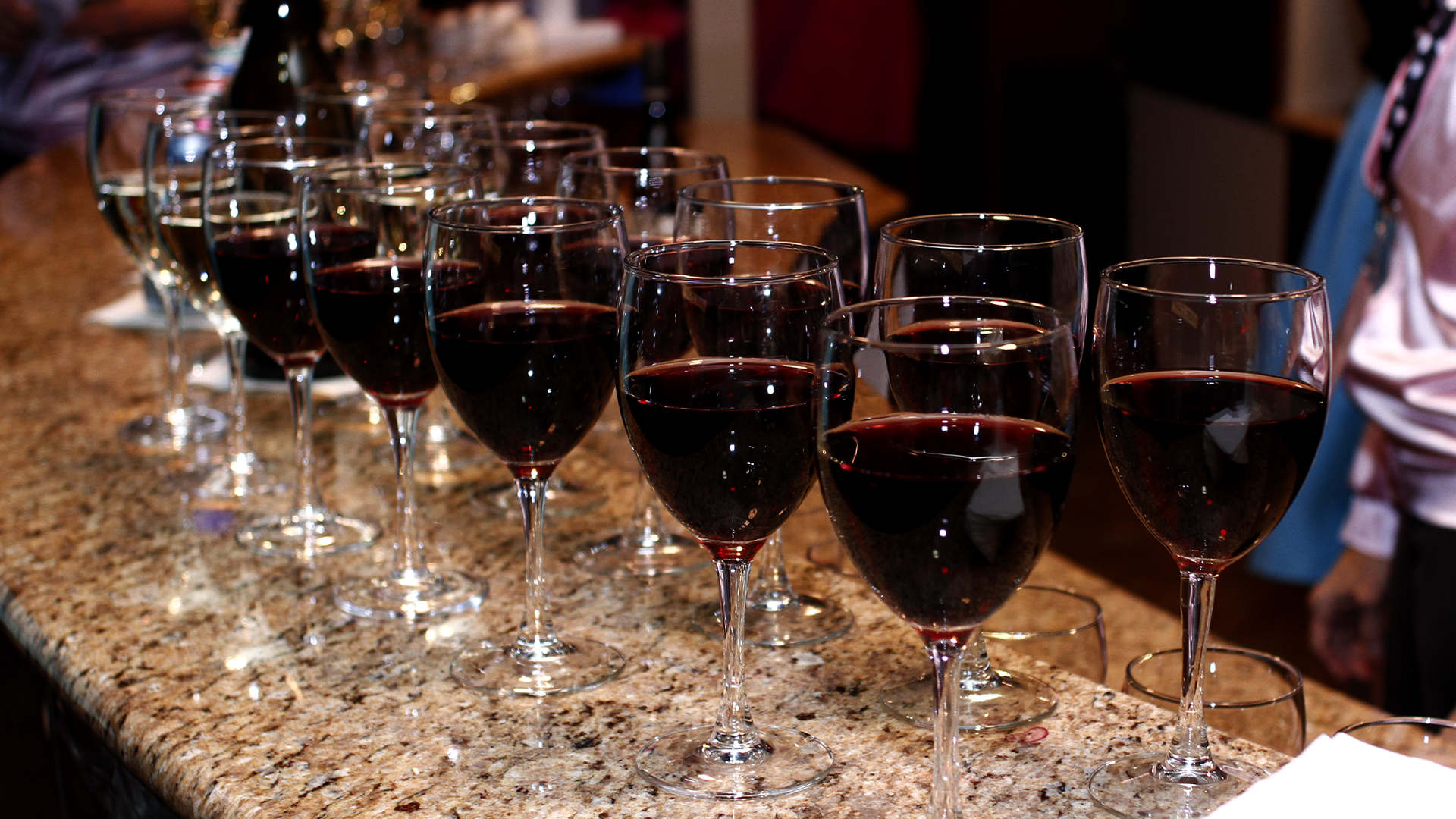 What to find at the gala: Wine glasses lined up in a row for the gala guests to take as they walk by concessions.