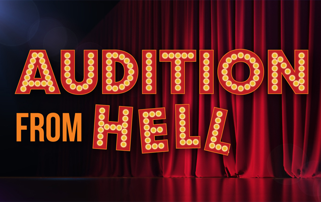 Audition From Hell logo – 636×400 by Alan | Aug 15, 2022 Audition From Hell show logo featuring a background of a large red stage curtain with glowing marquee lettering.