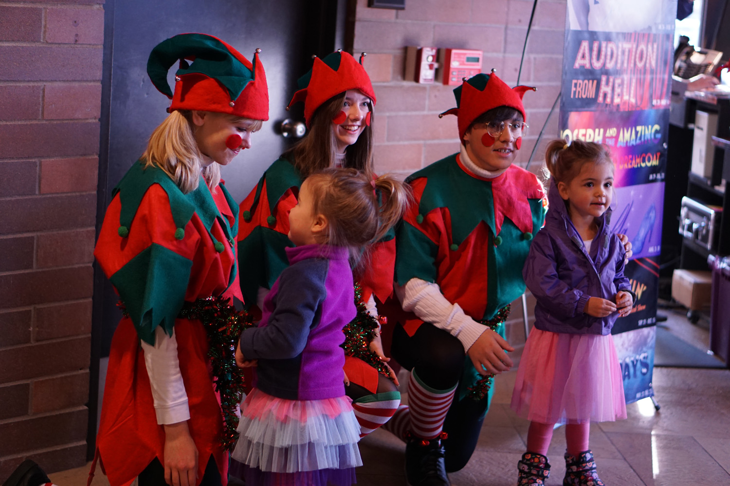 2022 – Santa Sing-Along – 20 by Jared McLean | Dec 5, 2022 Santa’s helpers in the lobby greeting kids and families.
