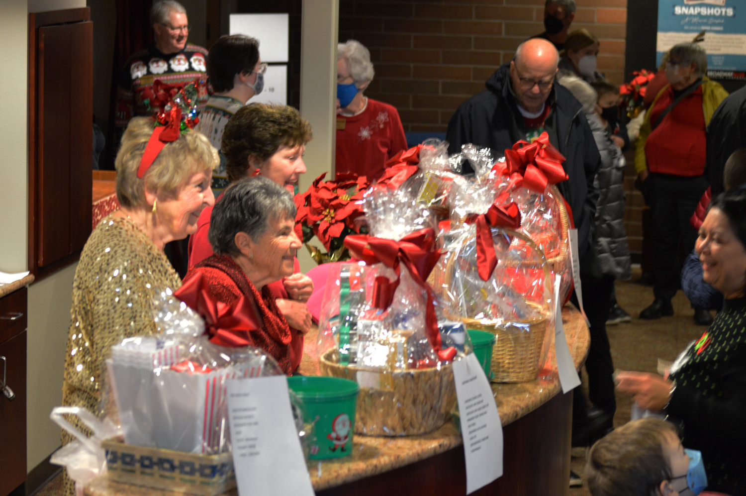 2022 – Santa Sing-Along – 05 by Jared McLean | Dec 5, 2022 The Broadway Rose Guild members in the lobby selling raffle tickets.