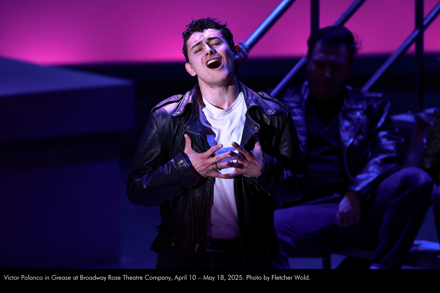 Victor Polanco in Grease at Broadway Rose Theatre Company, April 10 – May 18, 2025. Photo by Fletcher Wold. by Jared McLean | Apr 11, 2025