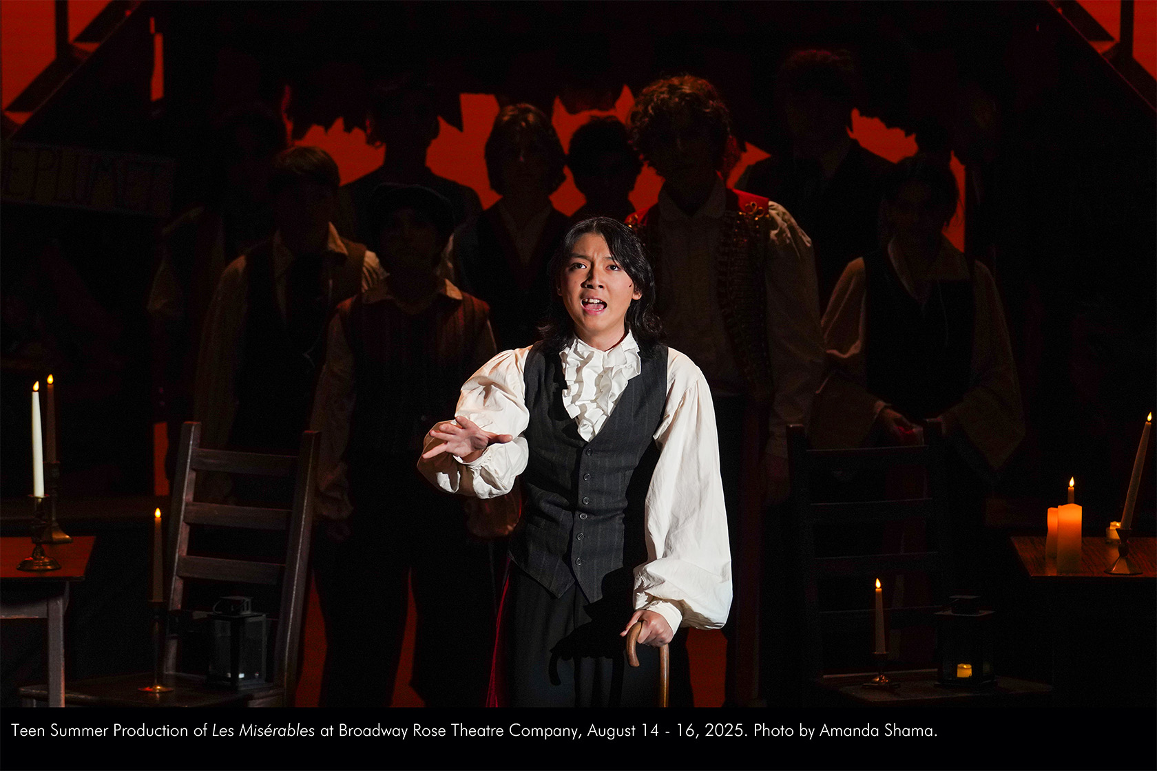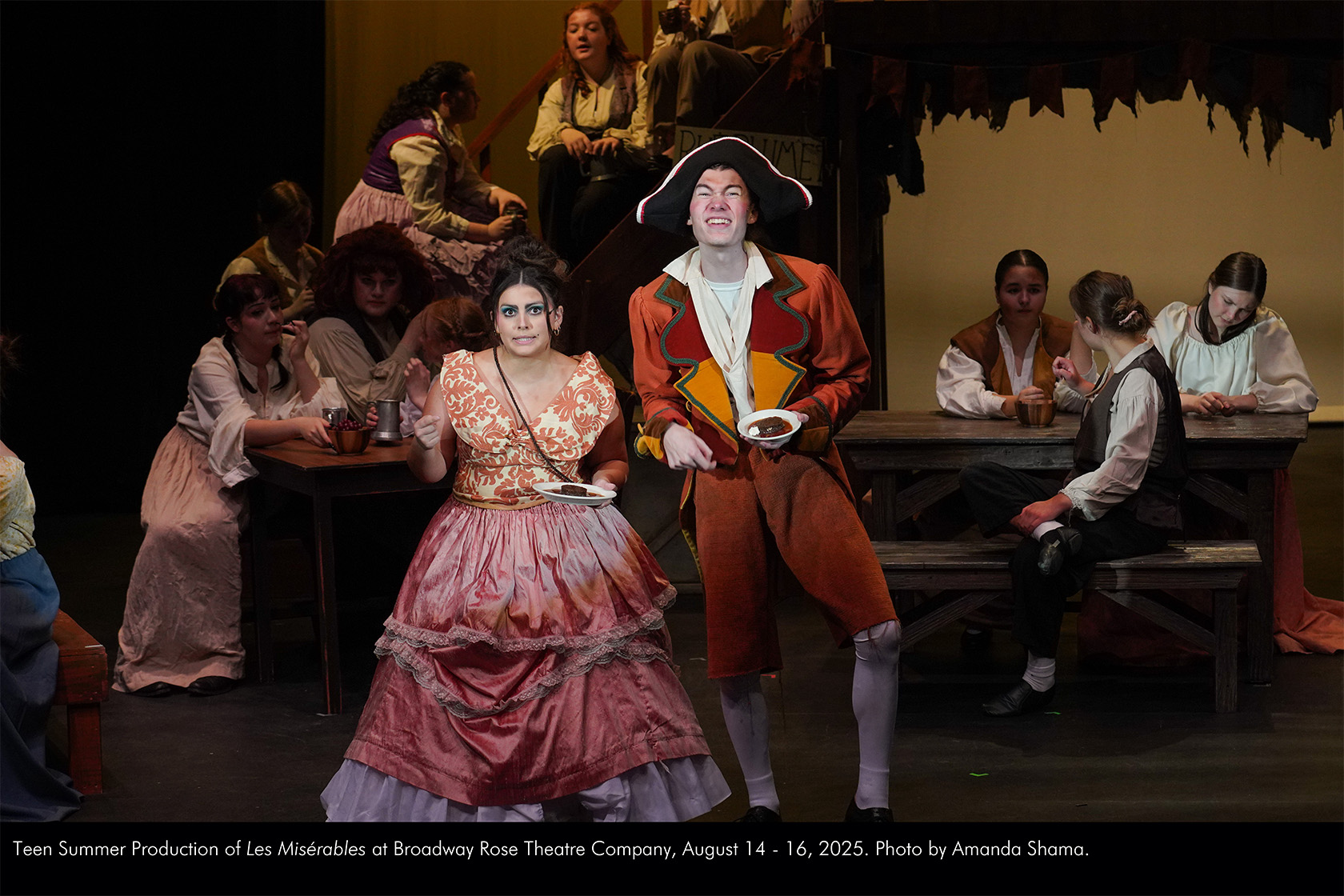 The Tony Award-winning musical based on the Victor Hugo novel returns to Broadway Rose for our Teen Summer Production. Jean Valjean, a man condemned to 19 years of hard labor for stealing a loaf of bread to feed his family, finds only hatred and suspicion when he is released on parole. From Valjean’s adoption and love of the orphan Cosette, to the soaring revolutionary fire of the rebels who fight on the barricade in the streets of Paris, the story of Les Misérables is one of love, courage, and redemption.