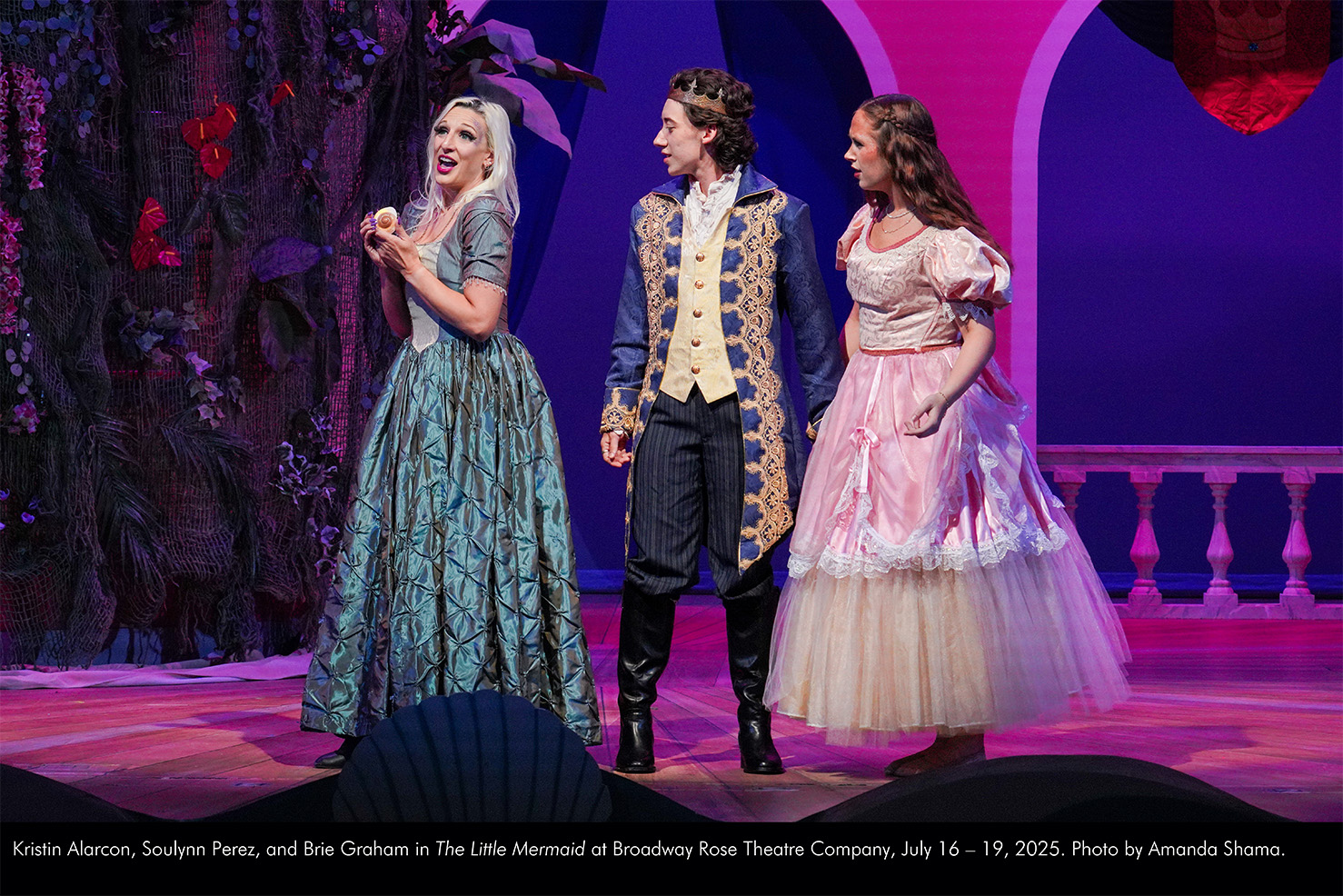 Kristin Alarcon, Soulynn Perez, and Brie Graham in The Little Mermaid at Broadway Rose Theatre Company, July 16 – 19, 2025. Photo by Amanda Shama. by Jared McLean | Jul 16, 2025
