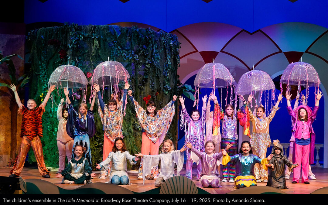 The children's ensemble in The Little Mermaid at Broadway Rose Theatre Company, July 16 - 19, 2025. Photo by Amanda Shama.