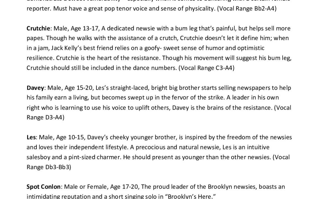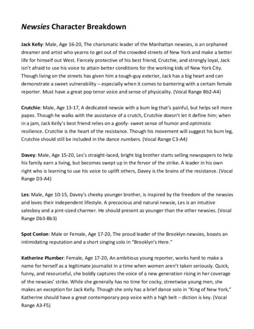 Newsies Character Breakdown
