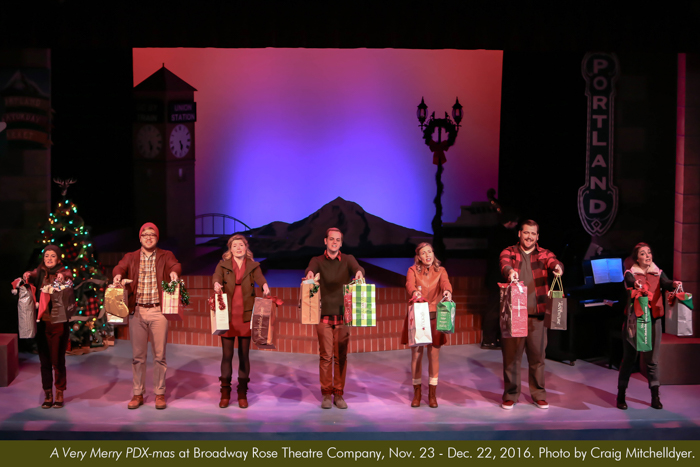 One of the reasons this particular Christmas show is so meaningful to us at Broadway Rose is because we opened the New Stage, our first permanent home, in 2008 with this show under the title Celebrate Home. Our dear friend Abe Reybold, one of our go-to directors, put the whole thing together for us to celebrate our expansion to a year-round season with this beautiful new building. He considered it a Christmas card to all those who helped create this place. We presented an updated version a few years later under the title A Very Merry PDX-mas. Many theatres have traditions and we have decided to make this show one of ours. We put it on every few years with a facelift and a fresh coat of paint and we are ready to celebrate the holidays Portland-style. So whatever you may be celebrating this season, thanks for including us in your plans and I hope that we will become a tradition for you too.