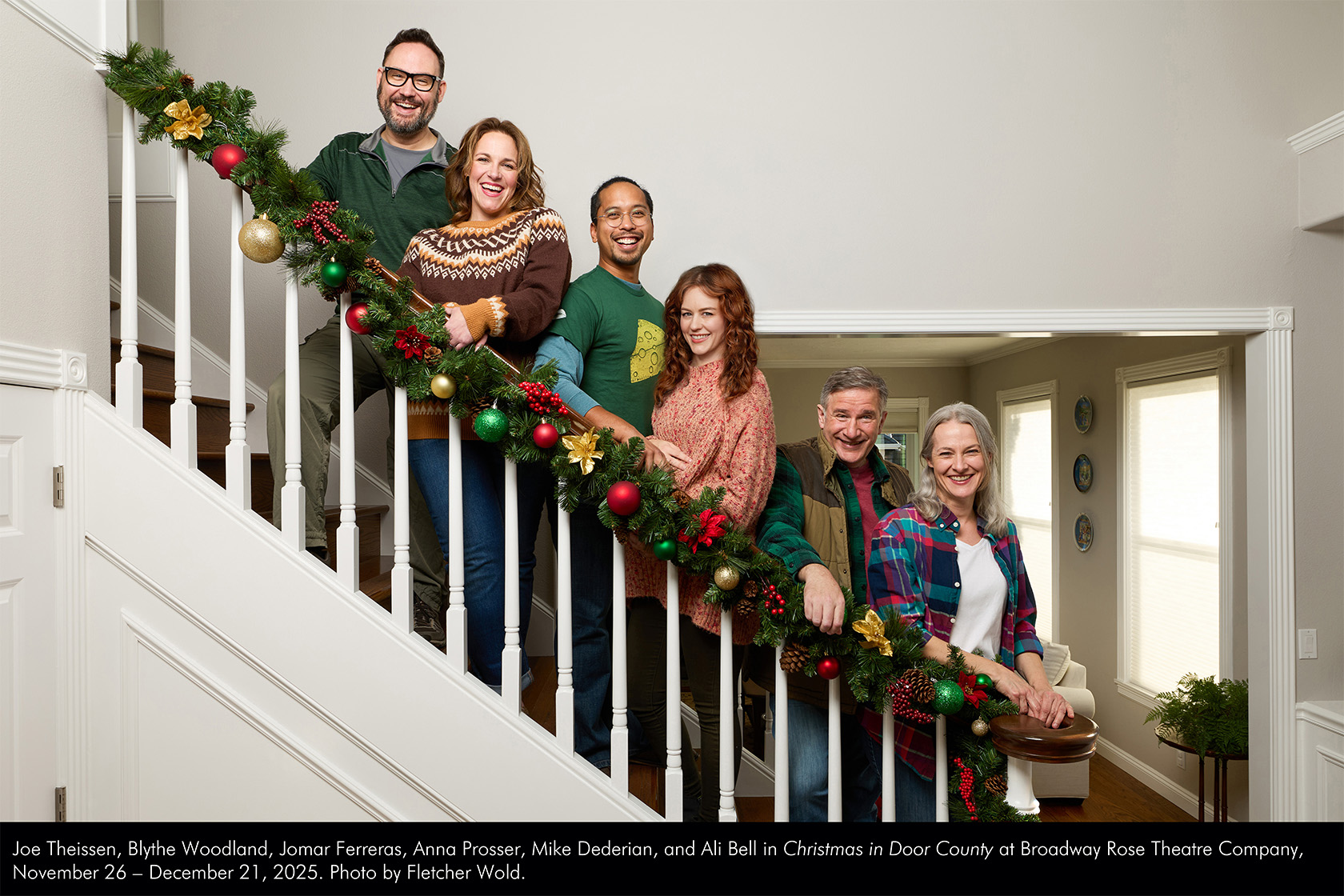 Tigard, OR – Broadway Rose Theatre Company presents Christmas In Door County, a cheerful new holiday musical revue jam-packed with classic Christmas tunes and modern hits. Preview performance is Wednesday, November 26, with opening night on Friday, November 28, and performances continuing through December 21. Evening performances are Wednesday through Saturday at 7:30 p.m. Matinees are at 2:00 p.m. on Saturday and Sunday. A post-show talkback will be hosted at the Saturday matinee on December 6; audio description is available at the Saturday matinee on December 13. Performances are held at the Broadway Rose New Stage located at 12850 SW Grant Avenue in Tigard.