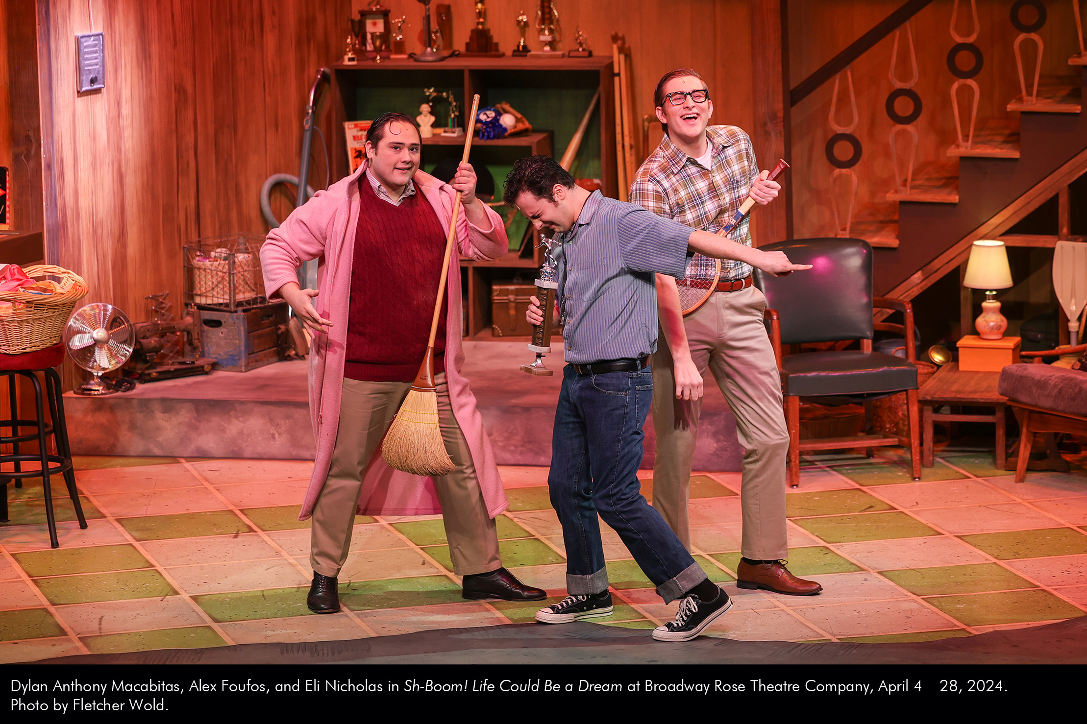 Dylan Anthony Macabitas, Alex Foufos, and Eli Nicholas in Sh-Boom! Life Could Be a Dream at Broadway Rose Theatre Company, April 4 – 28, 2024. Photo by Fletcher Wold. by Jared McLean | Apr 5, 2024