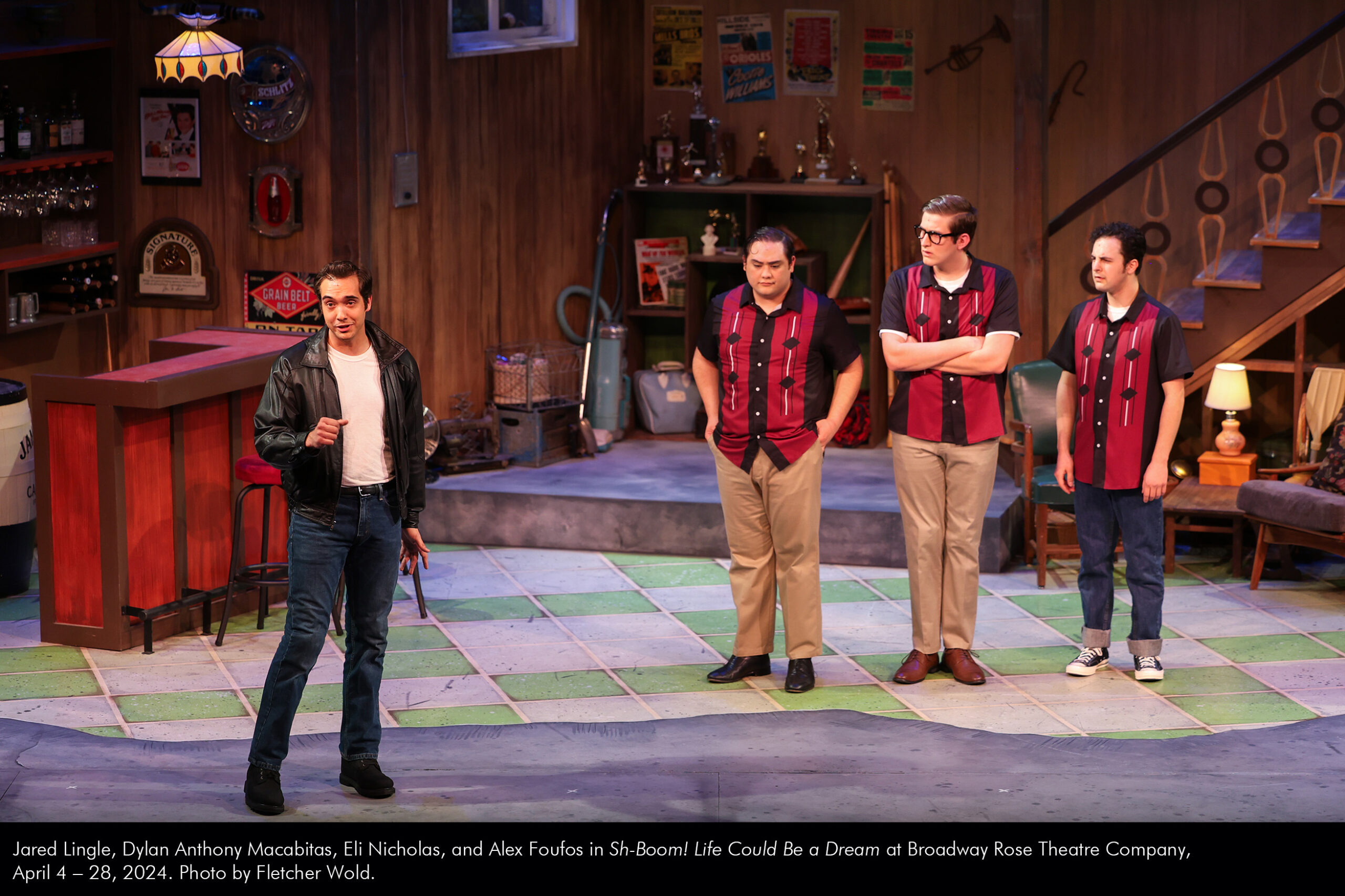 Jared Lingle, Dylan Anthony Macabitas, Eli Nicholas, and Alex Foufos in Sh-Boom! Life Could Be a Dream at Broadway Rose Theatre Company, April 4 – 28, 2024. Photo by Fletcher Wold. by Jared McLean | Apr 5, 2024