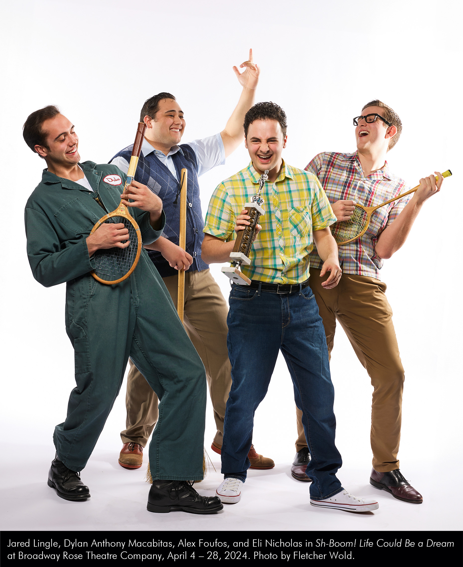 Jared Lingle, Dylan Anthony Macabitas, Alex Foutos, and Eli Nicholas in Sh-Boom! Life Could Be a Dream at Broadway Rose Theatre Company, April 4 – 28, 2024. Photo by Fletcher Wold. by Jared McLean | Mar 14, 2024